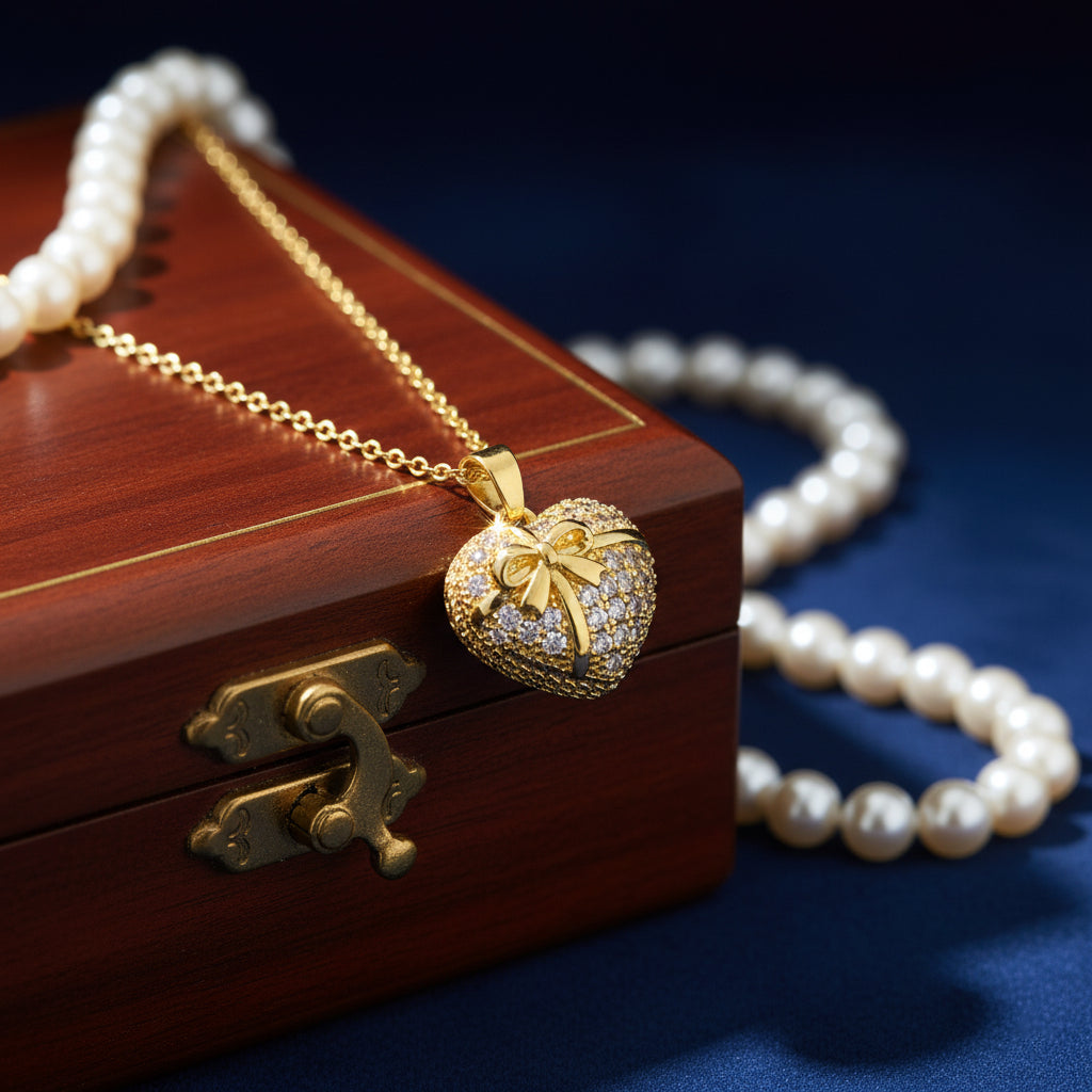 Bow Amour – Pave Heart Pendant Necklace