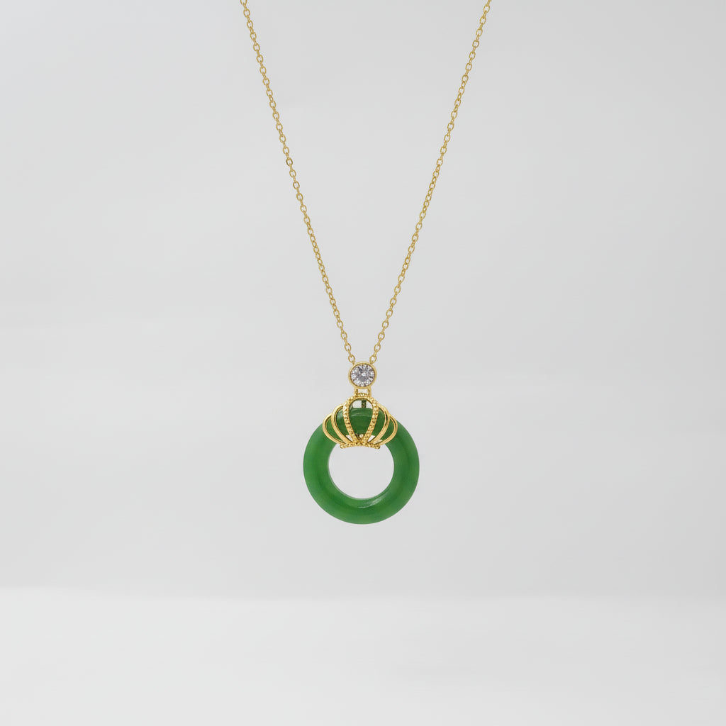Emerald Halo – Jade Crown Pendant Necklace