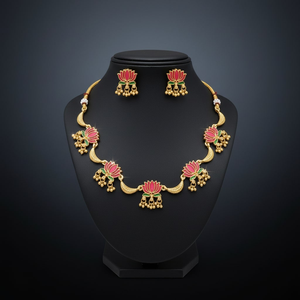 Kamalika Lotus Enamel Necklace Set