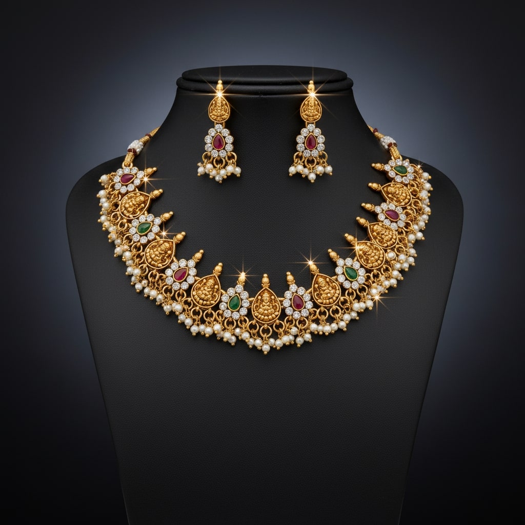 Navratna Devi Coin Necklace Set
