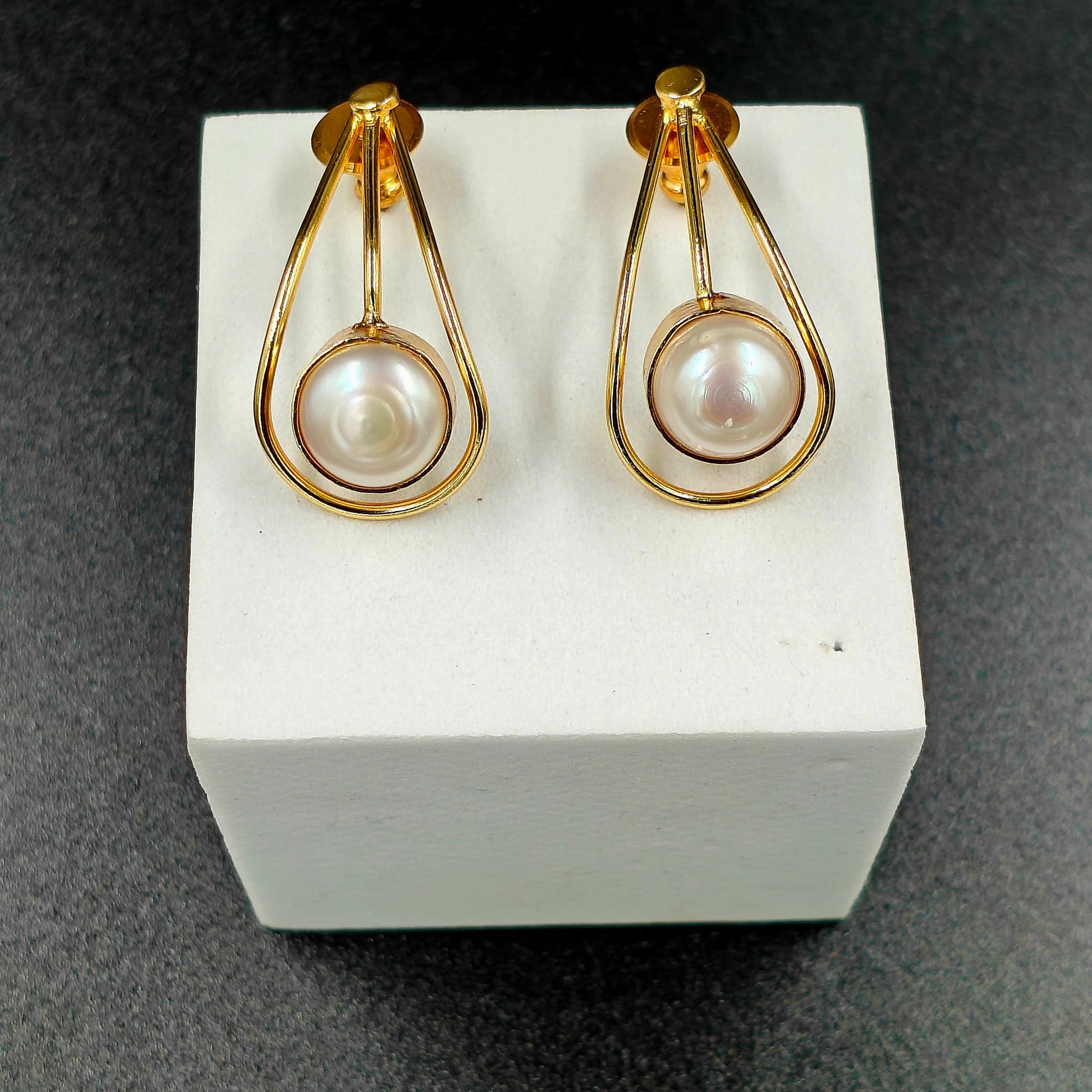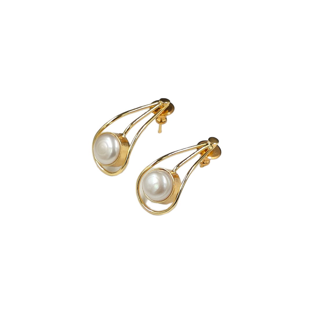 Inspired by atomic symmetry, Orbit Shell Drops feature freshwater pearls suspended in sleek, teardrop-shaped gold frames. A perfect pair to add a modern edge to your pearl collection.
